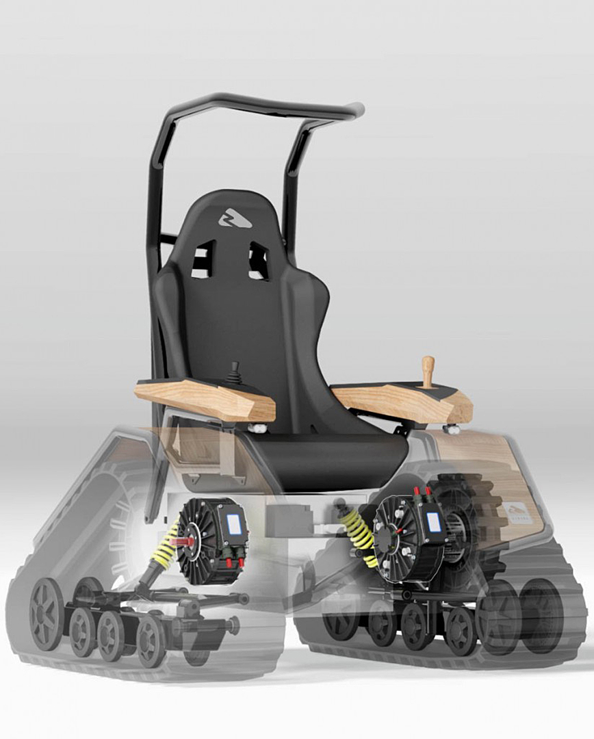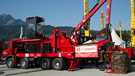 Entwicklung des Gesamtsystems. Komplette Konstruktion des Fahrzeugs, Auslegung aller Komponenten, Festigkeitsberechnungen, Entwicklung der Hydraulikanlage, Entwicklung von verschiedenen Hydraulikblöcken, Entwicklung der elektronischen Steuerung mit Schnittstelle zum Aufbau. Herstellung der Kabelbäume, Montage der Elektrik, Softwareentwicklung und Inbetriebnahme. |