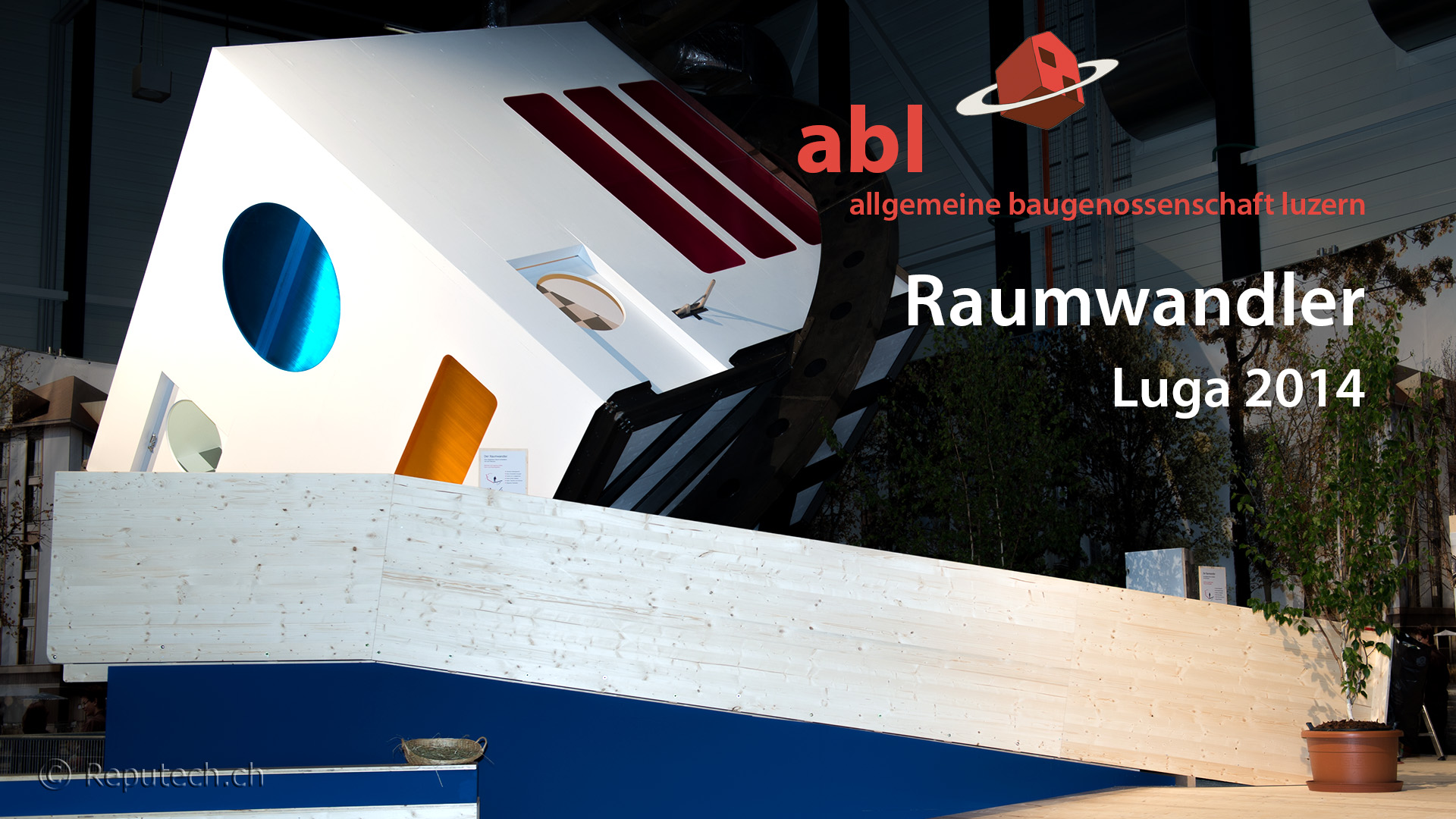 Die abl (allgemeine baugenossenschaft luzern) realisierte mit dem Erlebnis Raumwandler einen spektakulären Auftritt an der Zentralschweizer Frühlingsmesse LUGA. Der Raumwandler soll die Dynamik und den Elan der Wohnbaugenossenschaft symbolisieren.